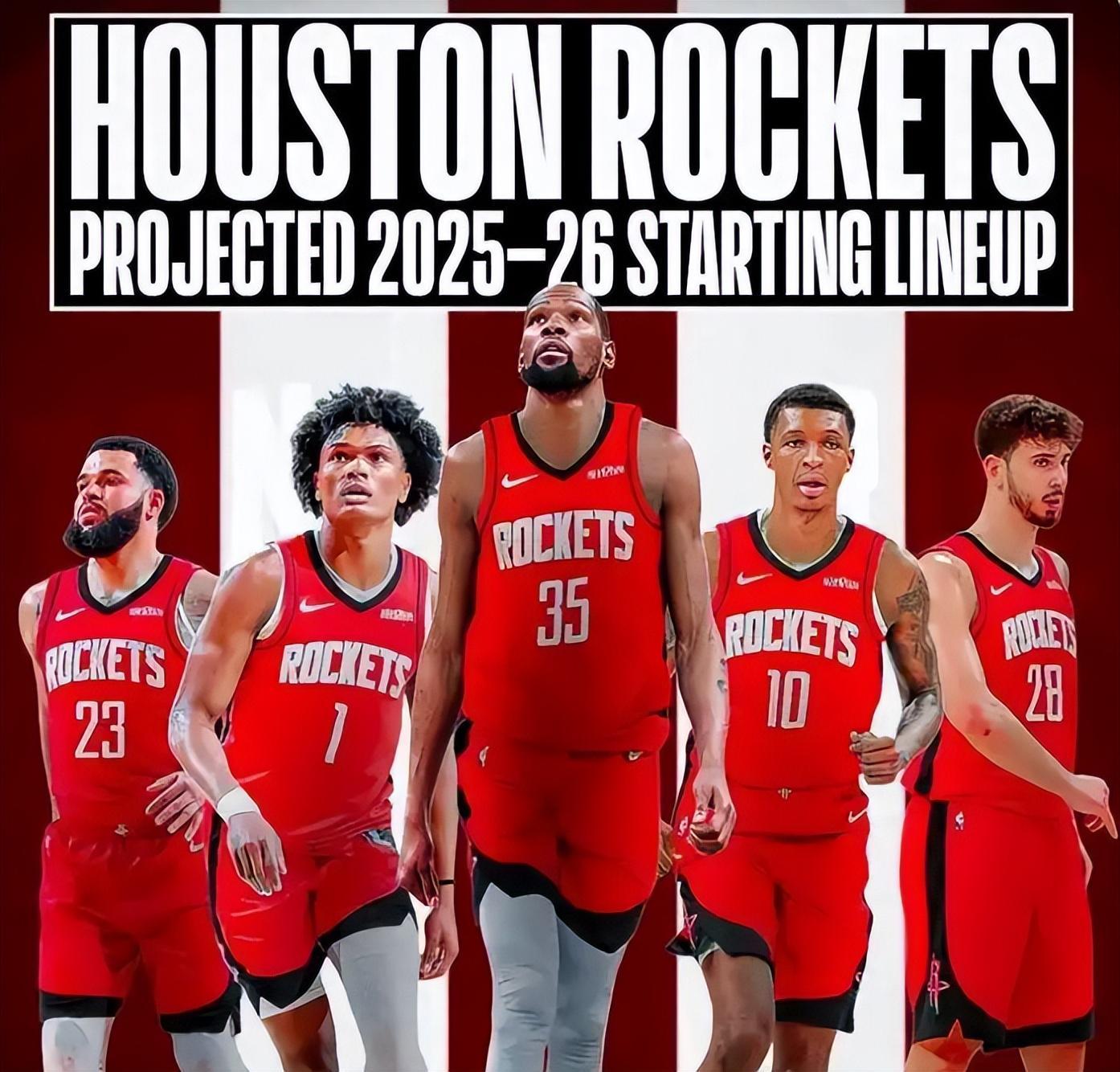 新赛季,火箭首发阵容预计为:范弗利特、阿门·汤普森、杜兰特、小贾巴里和申京,替补端还有亚当斯、伊森、芬尼-史密斯、泰特、卡佩拉、谢泼德等一系列悍将,阵容深度甚至比雷霆还恐怖。而火箭队强大的整体防守实力将有效减轻杜兰特常规赛期间在防守端的负担,从而帮助他更好地保持体能,健康的挺进季后赛,那里才是巨星的舞台。